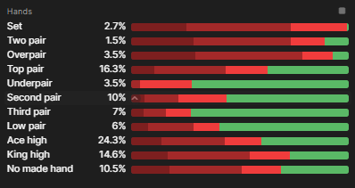 לשם המחשה, כך נראית תדירות ההימור עם made hands בפלופ שלנו: