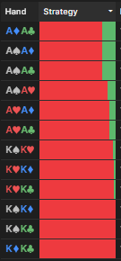 ניואנס קטן אך חשוב – יש לשים לב שמבין 12 קומבניציות של זוג אסים וזוג קינגים הסולבר נוטה להכניס לטווח הצ'ק שלו זוגות אס ללא לב: