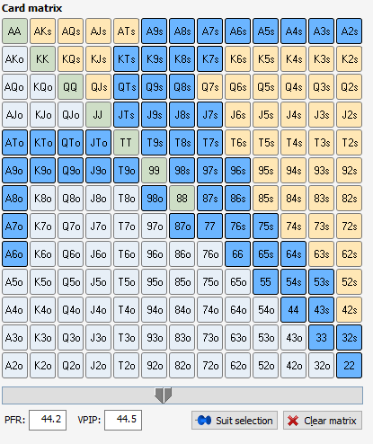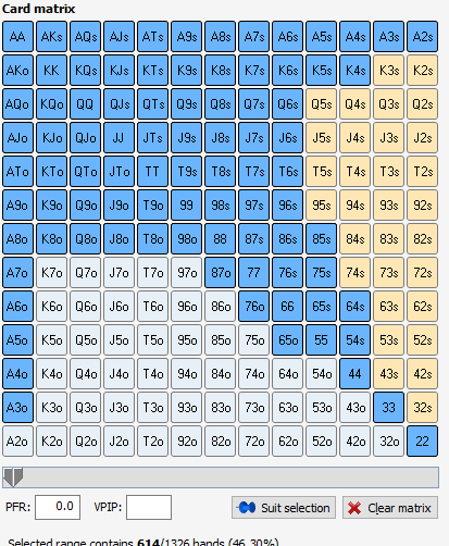 כך נראה (בערך, אם אני מפרגן לו) טווח הלימפ-קול של השחקן UTG: