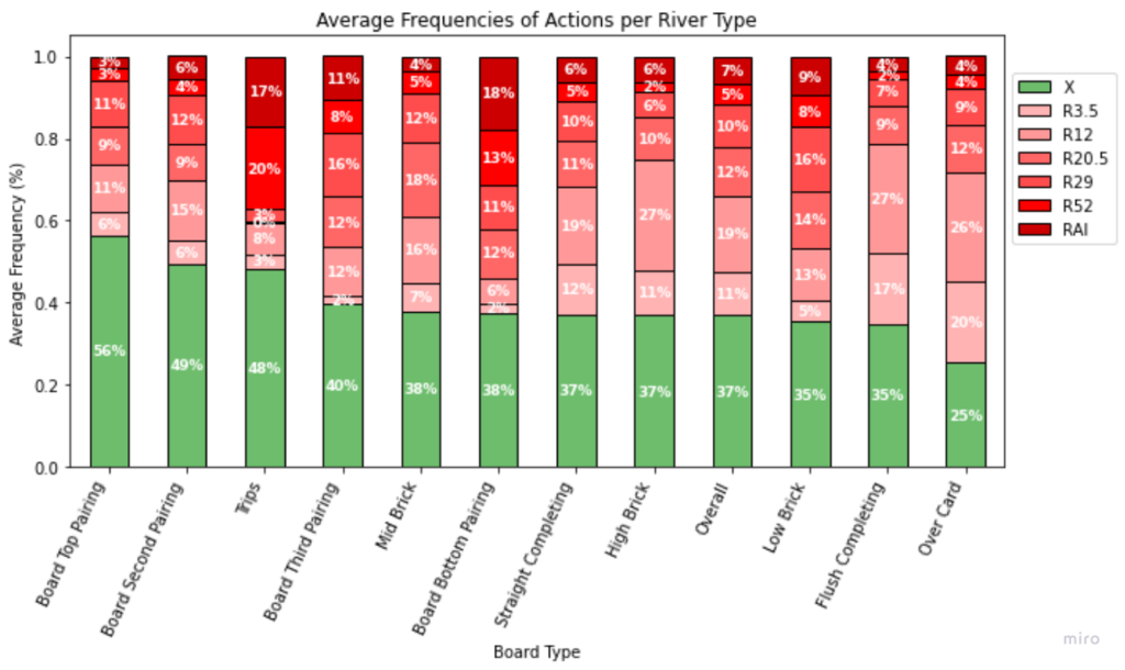 הפעם לא נעבור על כל הגרפים של סוגי הלוח כי לא מצאתי שם תובנות מעניינות שלא ראינו קודם, נתמקד בדפוסי ההימור לפי סוג קלף הריבר.