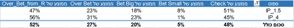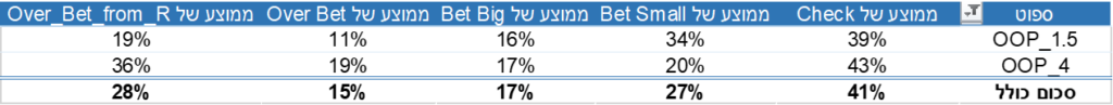בסולבר יש נתונים גם עבור ליין של overbet בפלופ אך מכיוון שאני לא משתמש בסוג ההימור הזה בפלופ אני לא מתעכב עליו.