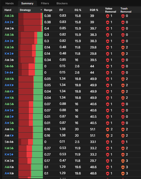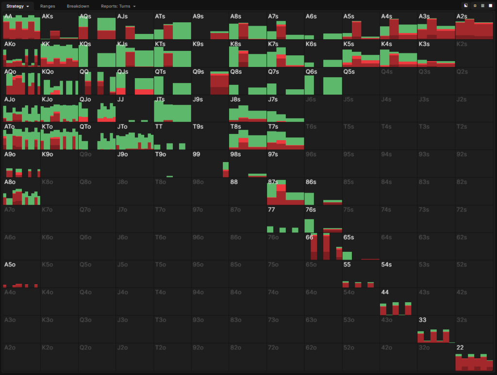 יש פה כמה קומבינציות ספציפיות שעולות לי תהיות לגביהן ולא ממש ברורה לי הבחירה של הסולבר (למשל להמר בגדול עם KQo או לצ'קצ'ק עם יד כמו K6s שכבר אפשר להגדיר כיד זבל) אך אנחנו לא נתעכב על קומבינציות ספציפיות במקרה הזה שכן בתדירות הימור כל כך גבוהה מלאכת הרכבת הטווח היא דיי פשוטה וגם אם נסיט קצת צ'קים או הימורים מיד ליד ההבדל יהיה זניח.
